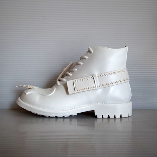 本来は戦争に使用されるミリタリーシューズや素材をファッションシューズに落とし込み、その反戦の意思を示したようです。彼はこういう素材使いをしてミリタリーとファッションの融合を試みたとも言われています。